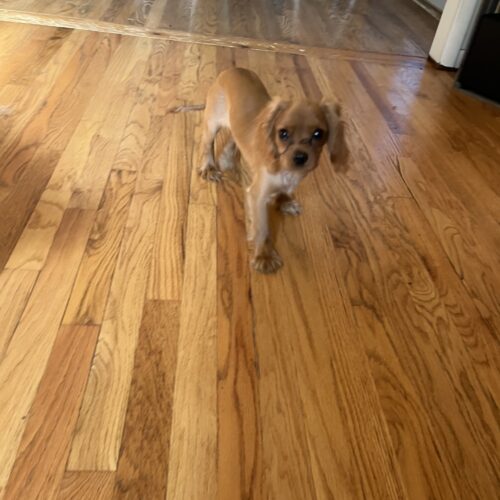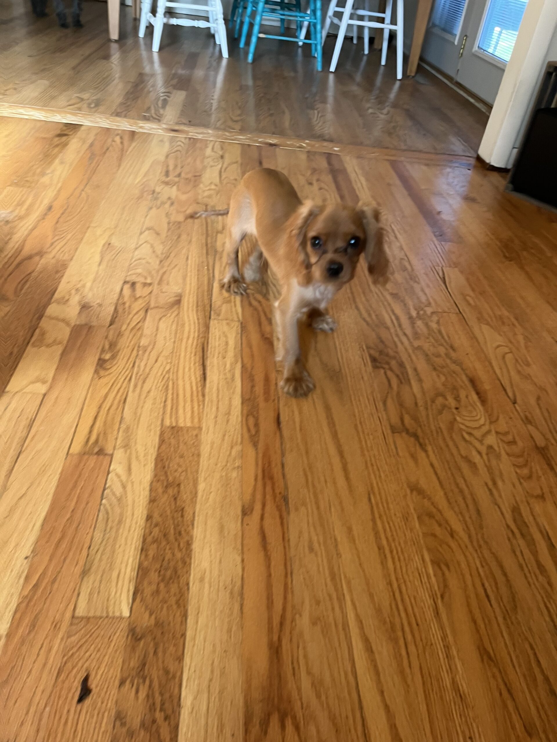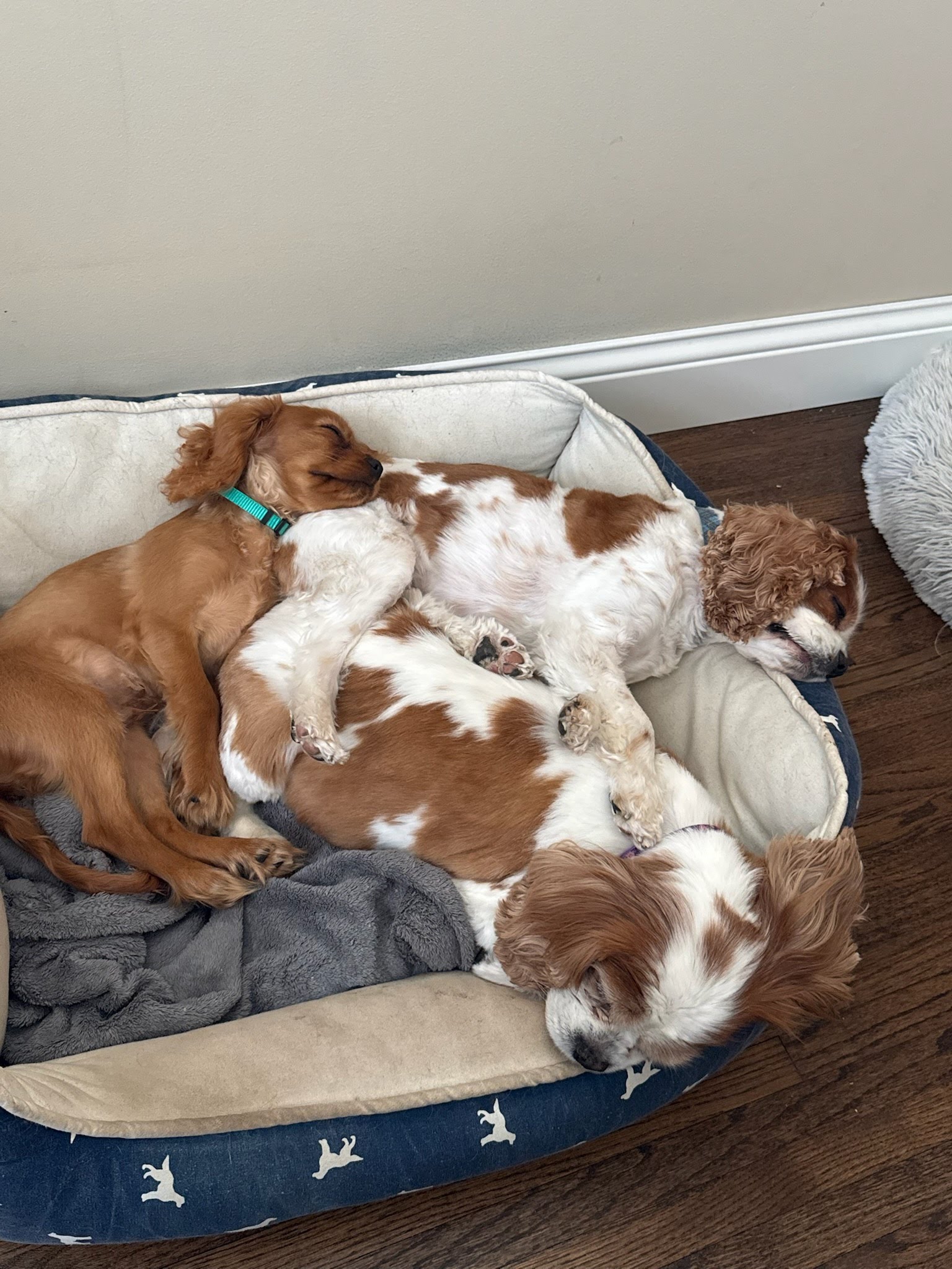 Living with three Cavaliers and a cat, Brioche is keen on encouraging everyone to play, sometimes a bit too enthusiastically! Our dogs are starting to teach him boundaries, and Brioche responds quickly when corrected—showing his willingness to learn and adapt.