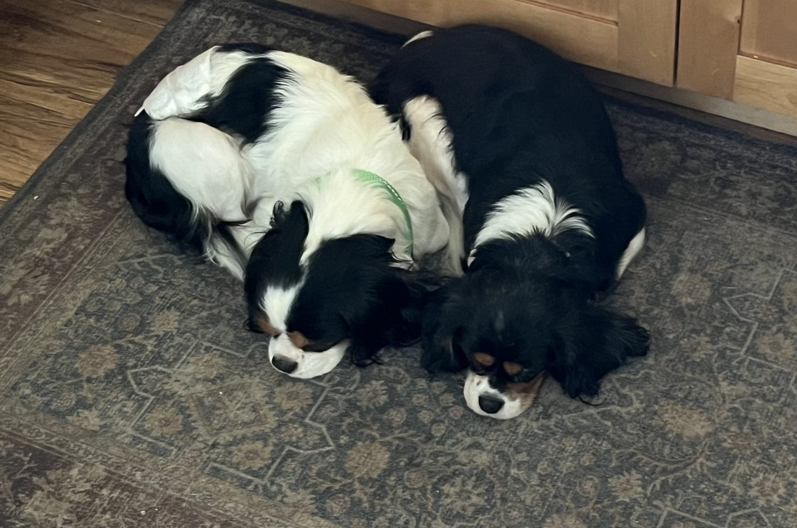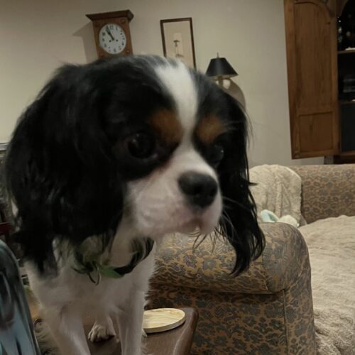 Tobias is a handsome tri‑color Cavalier whose journey is still unfolding. He is currently under veterinary care and will need to be neutered, have a dental procedure, and receive further evaluation for an eye condition before he is ready to find his forever home.