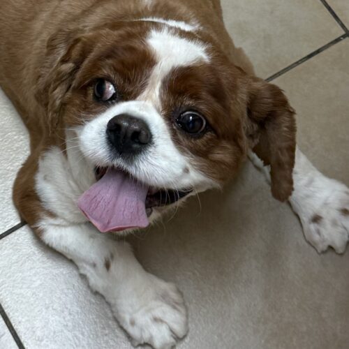Queen Elizabeth—affectionately known as Elizabeth—is a gentle, calm, and incredibly sweet girl who has settled into rescue with grace. She adores people of all ages, has been wonderful with other Cavaliers, and even charmed her foster’s 9‑year‑old granddaughter. Her soft nature and easy affection make her the kind of companion who quietly brightens every room she enters.