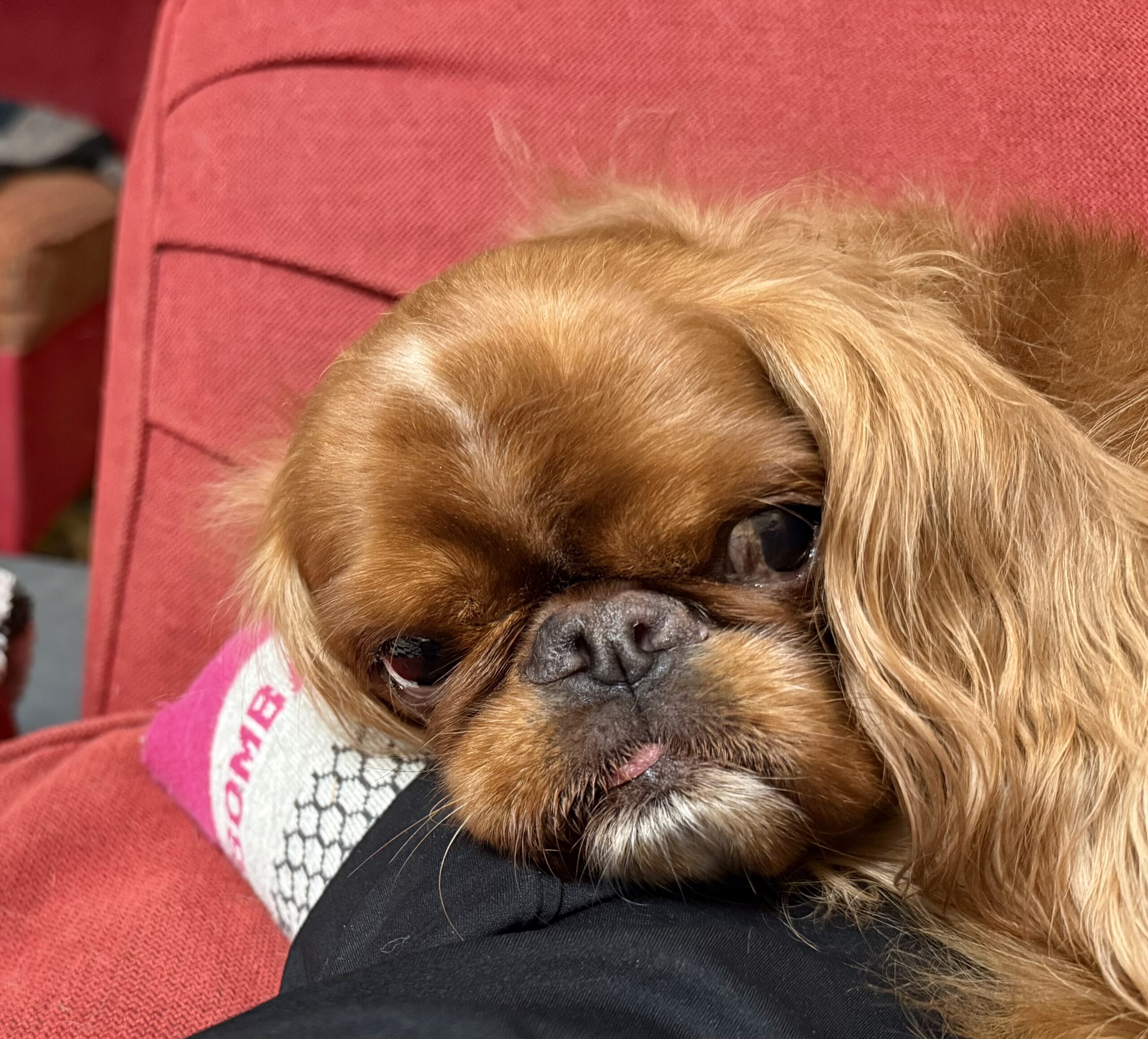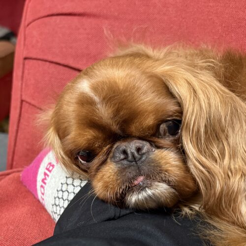 Loki is a gentle, ruby‑coated English Toy Spaniel who embodies calm companionship. This neutered boy is new to rescue and still completing the veterinary care he needs before he’ll be ready for adoption. He has a heart murmur that is currently asymptomatic and not requiring medication, and he also has bilateral luxating patellas. None of this dampens his spirit—he’s simply a mellow, easygoing soul who wants a soft place to land and someone to curl up beside.
