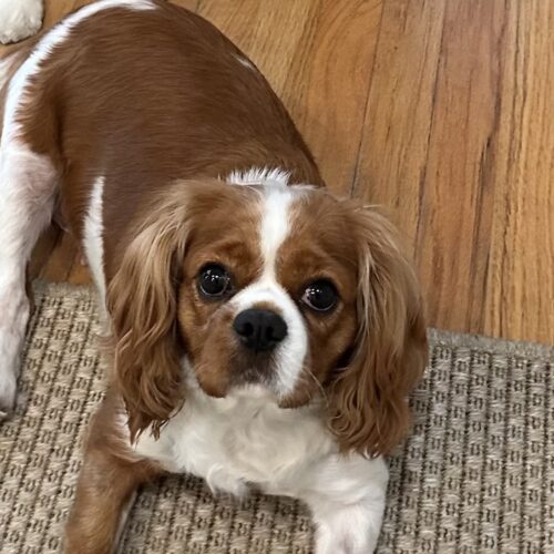 Pumpkin is a tender-hearted Blenheim Cavalier King Charles Spaniel who’s currently soaking up love and learning the rhythms of home life while she prepares for her spay and recovery. Though she’s not quite ready for adoption, we couldn’t wait to introduce her—because Pumpkin is pure affection wrapped in silky ears and soulful eyes.
