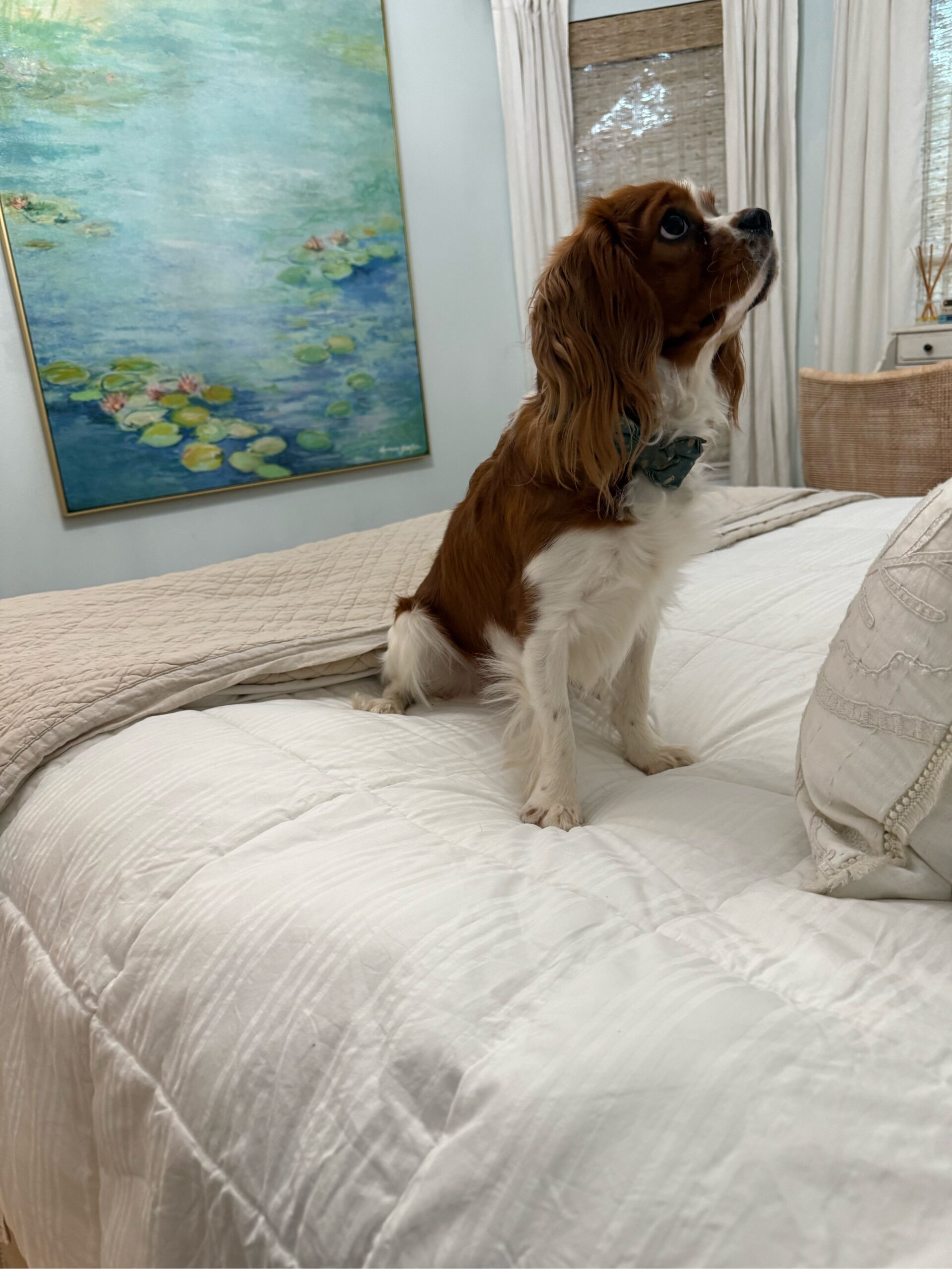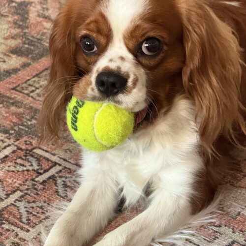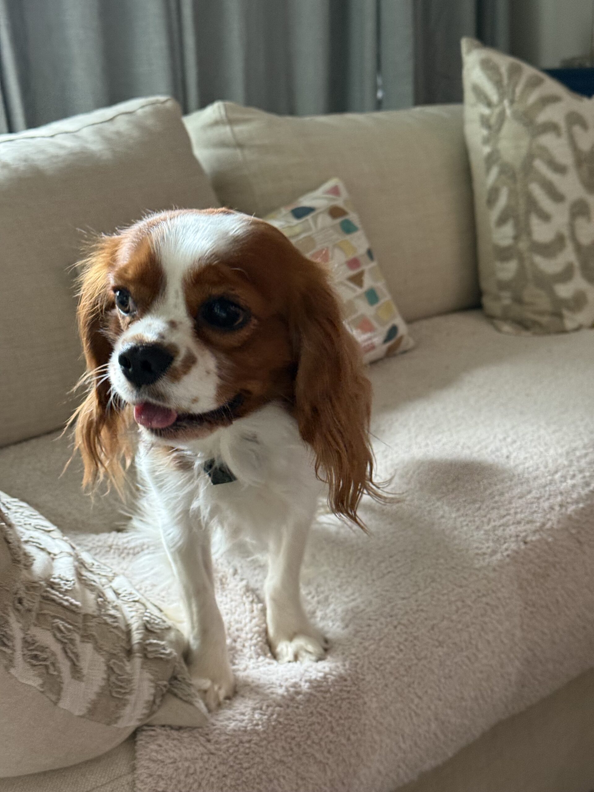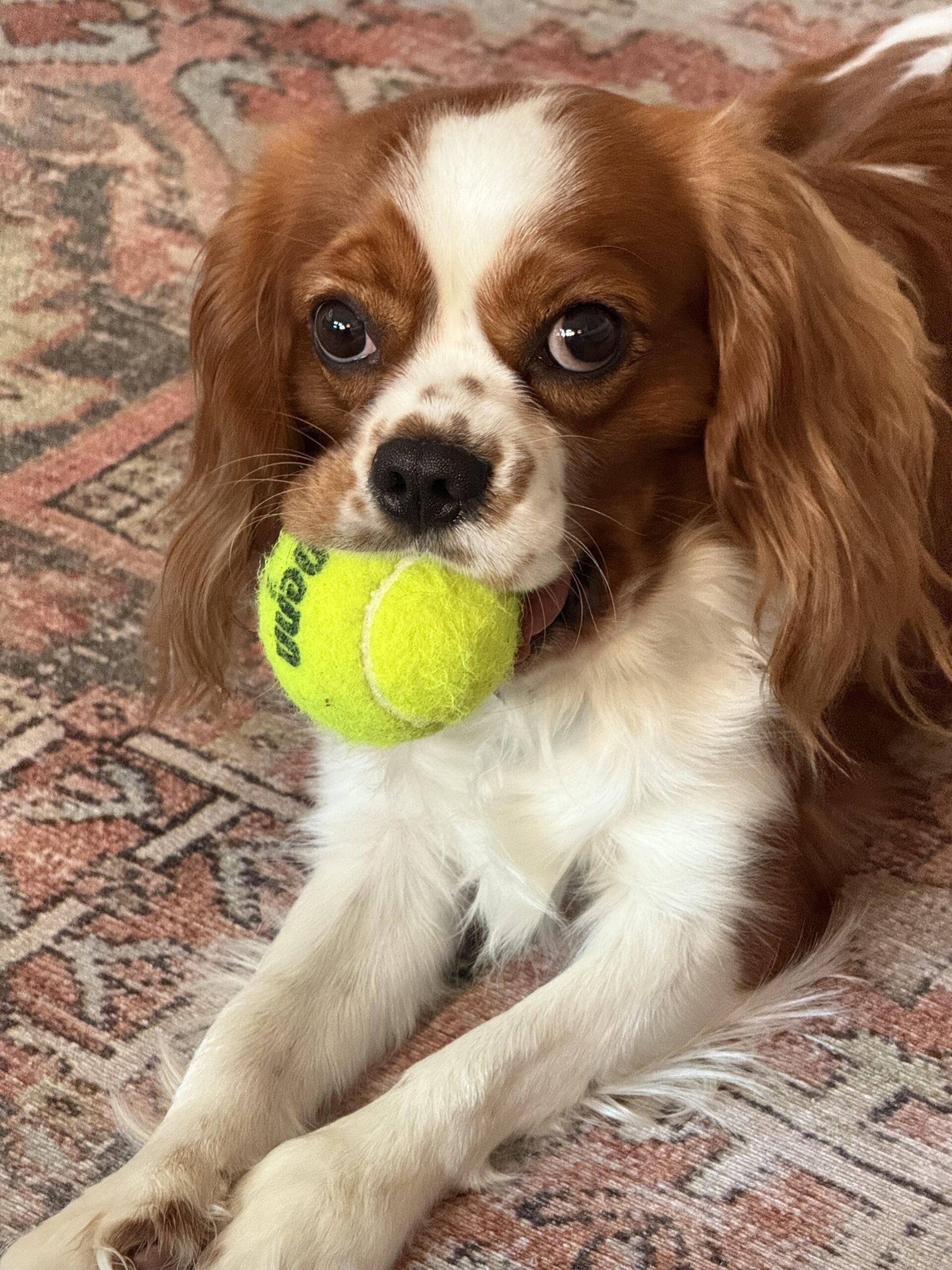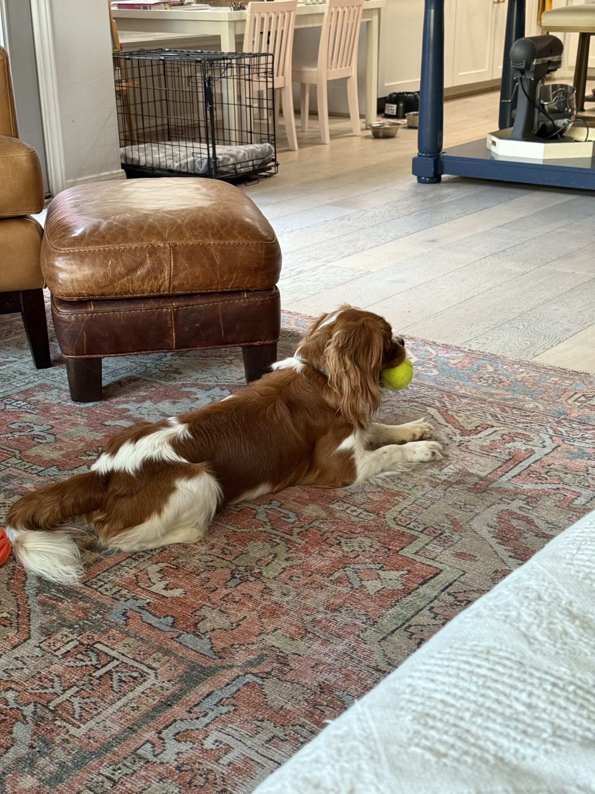 Rocket is a joyful, affectionate young boy who settled into his foster home with ease and grace. From day one, he’s shown excellent house manners—no accidents, no fuss, just a sweet companion who loves to be near his person. He walks beautifully on leash alongside his Cavalier foster sibling and delights in outdoor strolls and ball-fetching sessions.