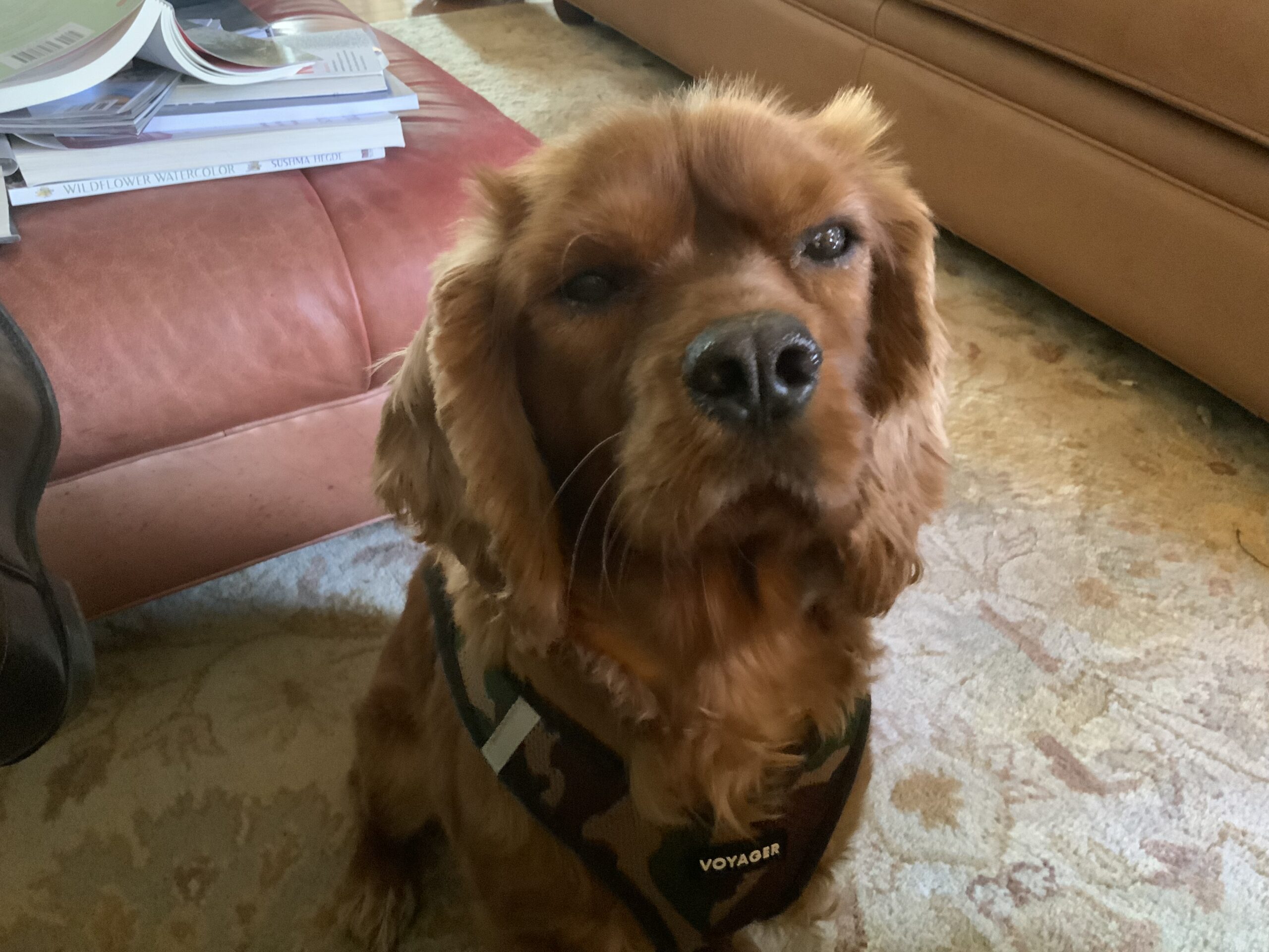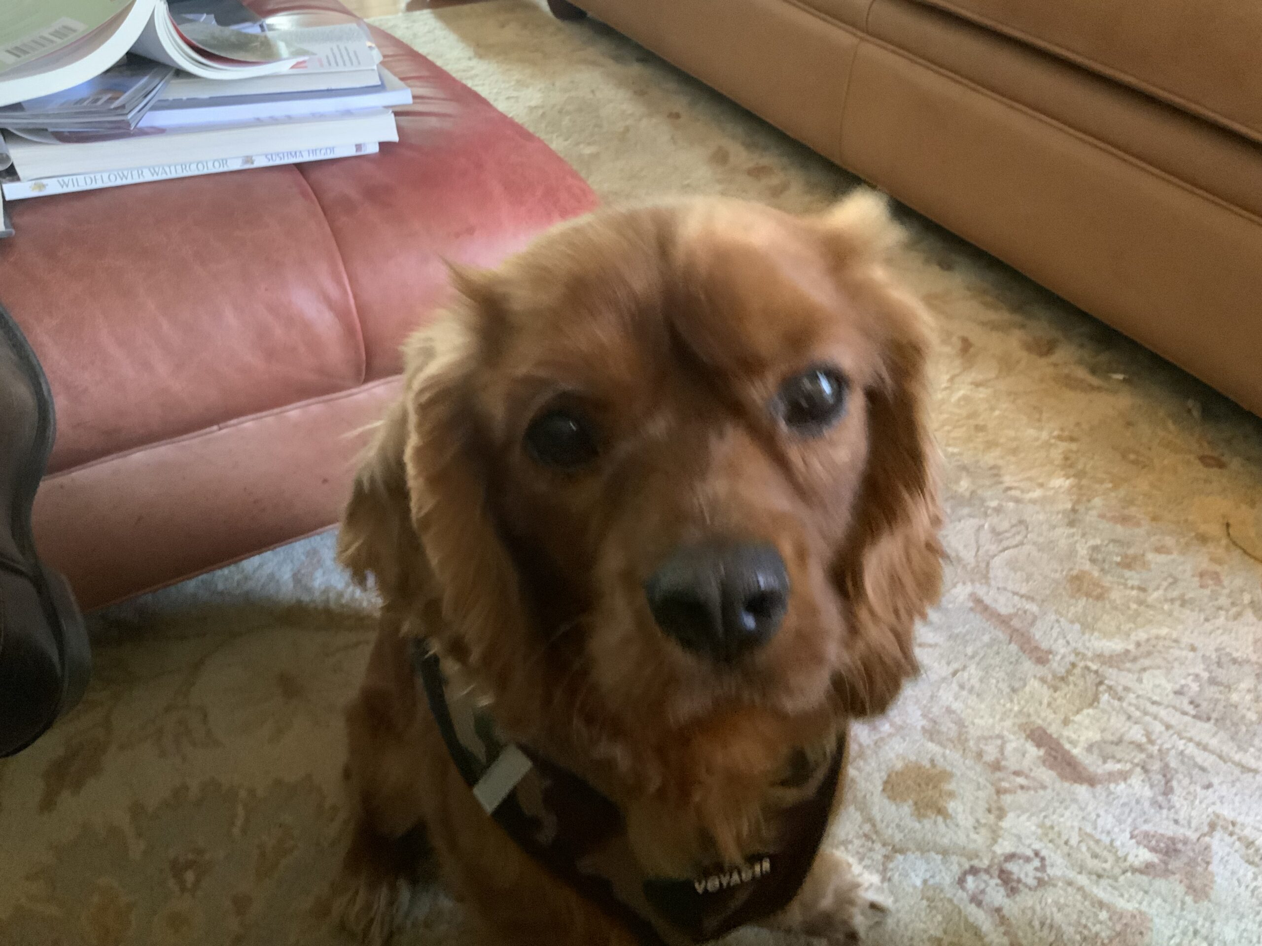 Rupert is a larger, solid Cavalier who could benefit from losing 4–5 pounds. He arrived with a very short “boot camp” haircut, so his feathers and slippers will grow back over time.